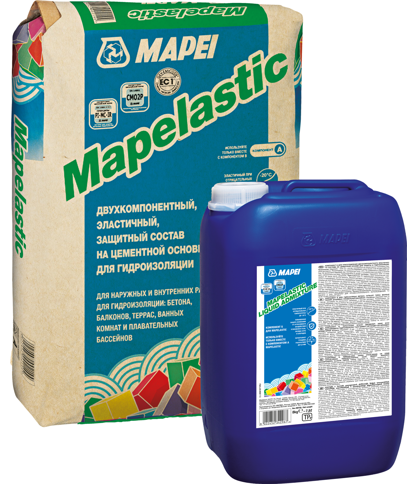 - Слой 2,5 мм Mapelastic эквивалентен 30 мм защитного слоя бетона по устойчивости к агрессивному воздействию хлоридов (В/Ц соотношение 0,45);