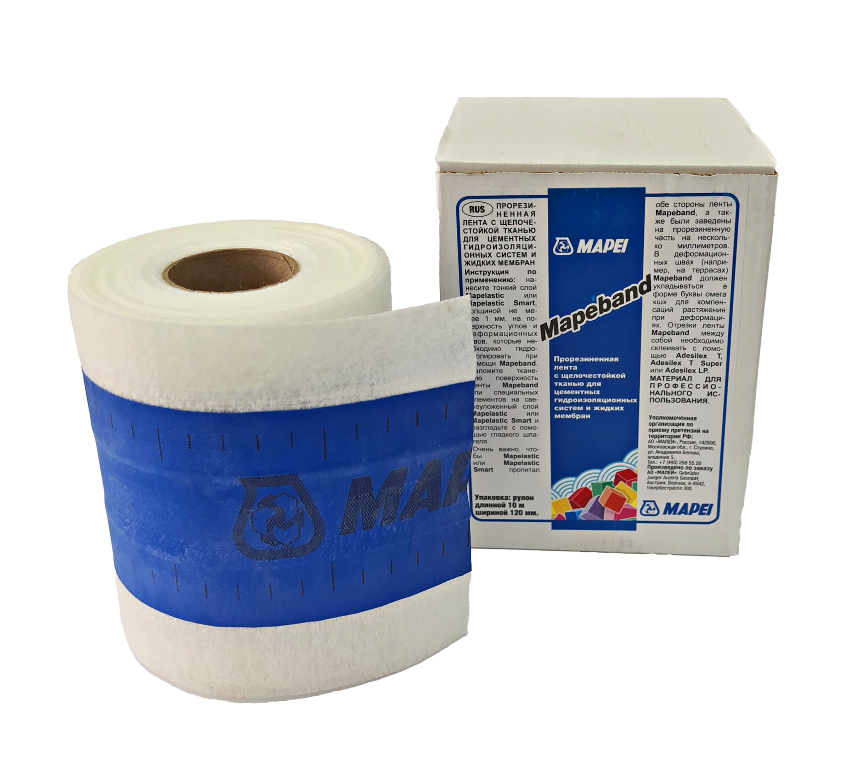 Прорезиненная лента с щелочестойкой тканью для цементных гидроизоляционных систем и жидких мембран.