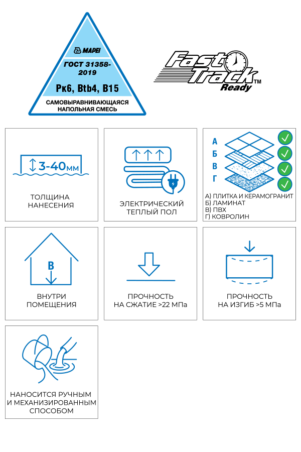 Сила, которой можно доверять: Всего за 28 дней он набирает прочность > 22 МПа, становясь монолитной и незыблемой основой для любого покрытия — от капризного паркета до массивной керамогранитной плитки.