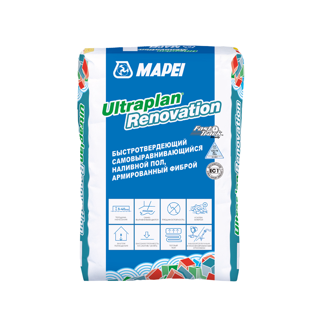 Быстротвердеющий самовыравнивающийся наливной пол, армированный фиброй, с толщиной нанесения от 3 до 40 мм.
