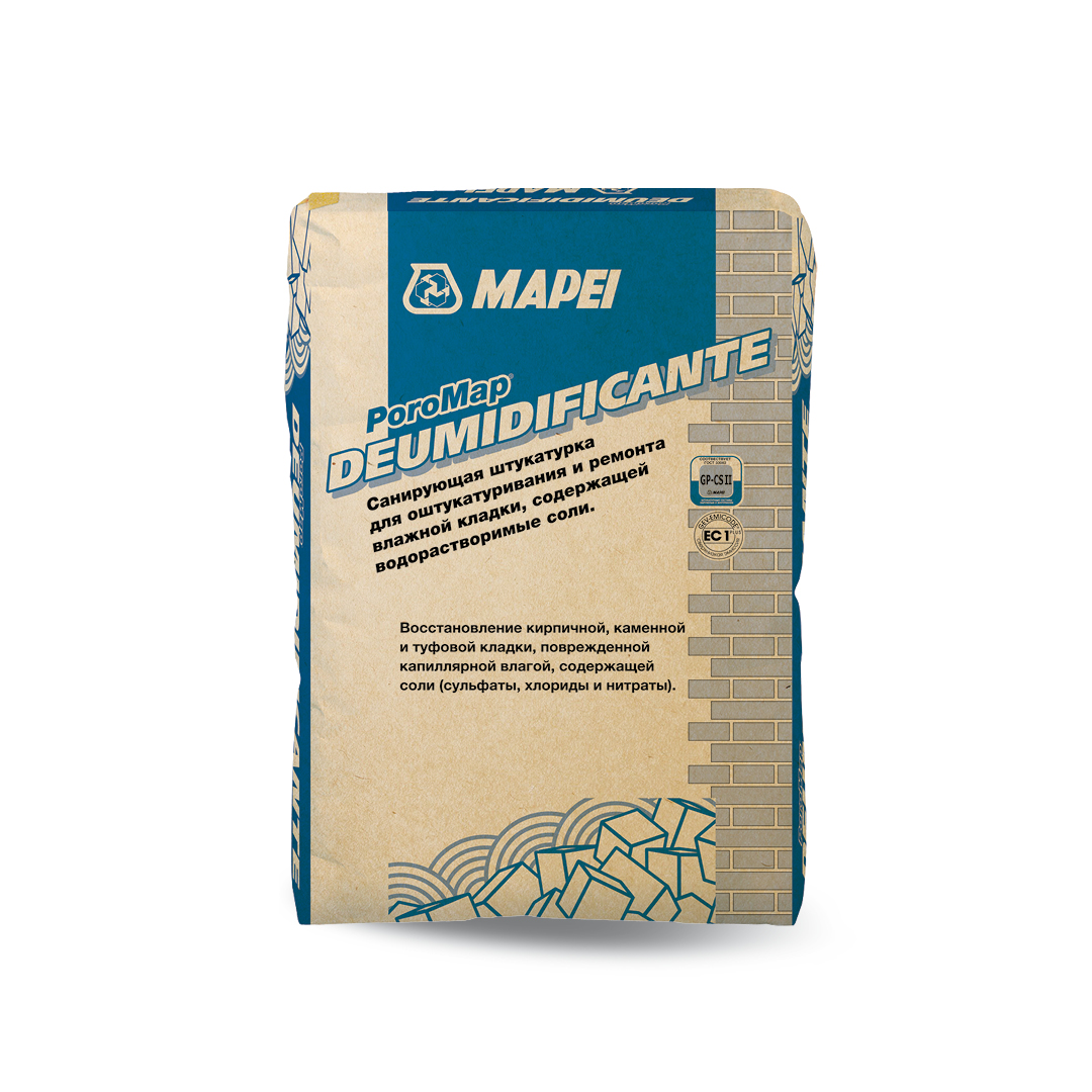 Санирующая штукатурка для оштукатуривания и ремонта влажной кладки, содержащей водорастворимые соли.
