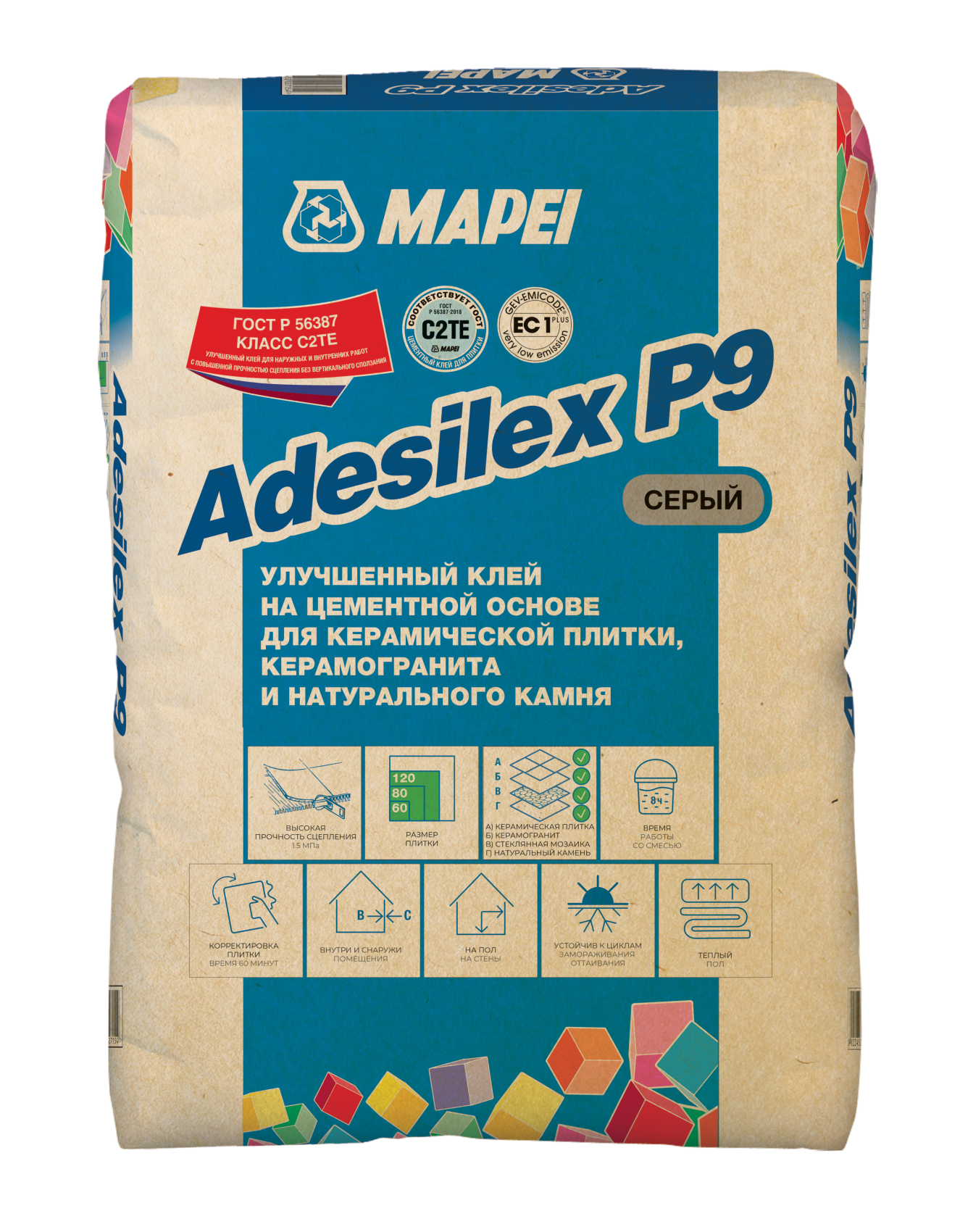 - высокая тиксотропность: Adesilex P9 может наноситься на вертикальные поверхности, не стекая и не приводя к сползанию плитки, в том числе и тяжелой;