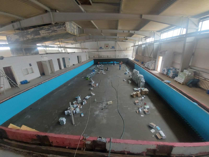 Для ремонта чаши большого и детского бассейнов использовали безусадочный быстротвердеющий состав наливного типа Mapegrout Hi-Flow. В затвердевшем состоянии он представляют собой высокопрочный бетон, устойчивый к истиранию, обладает высокой адгезией, имеет высокие показатели по водонепроницаемости и морозостойкости. Для установки закладных деталей и форсунок применяли анкеровочный состав Mapefill.